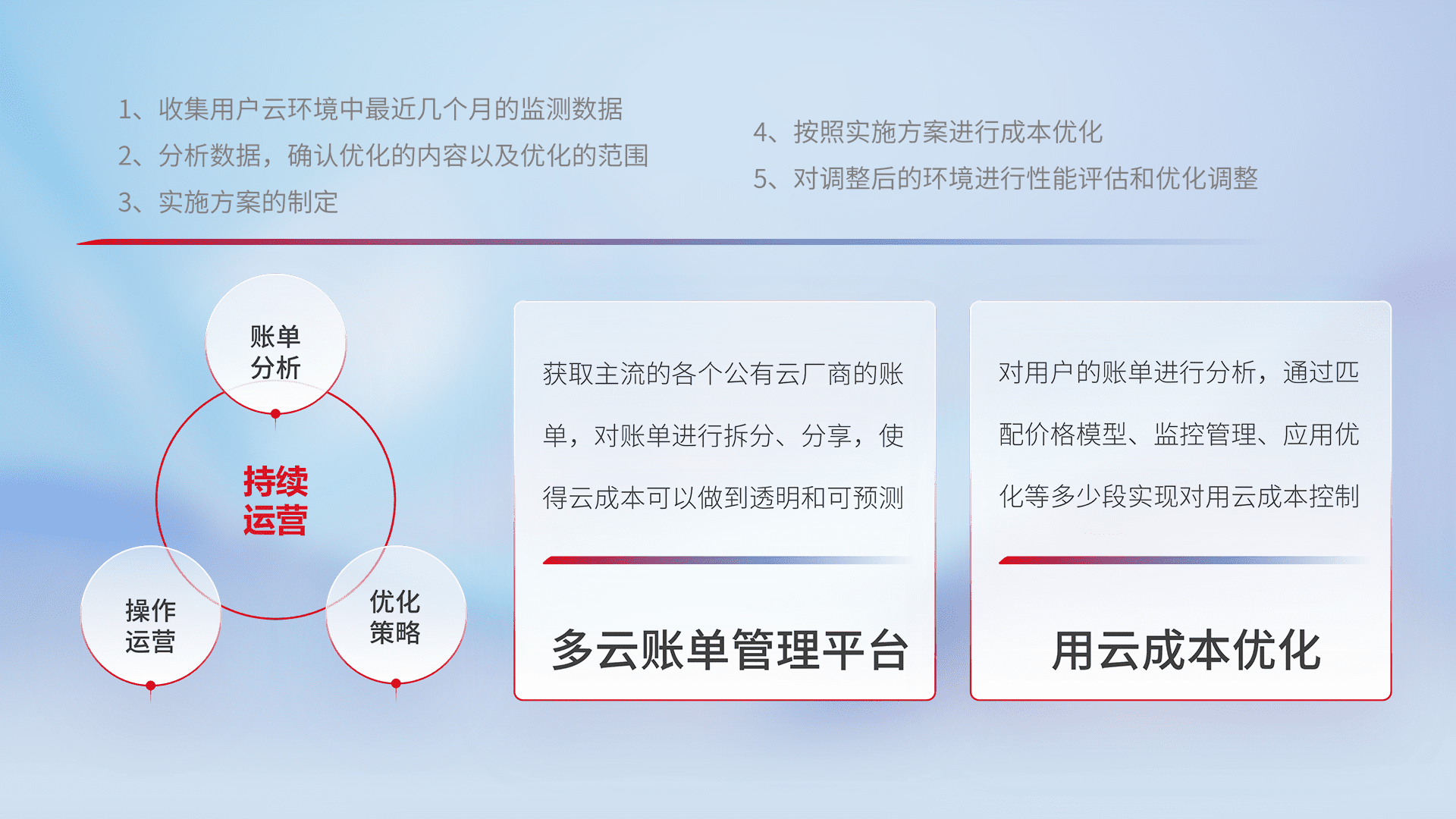 监控业务系统资源开销,,对资源的消耗精确计量,,,实现费用的透明化管理,,,,不断提升资源使用率,,,,调整资源购买方式,,,,降低资源费用成本,,用云成本可预测、、、、用云费用可优化,,,云资源配额有据可依。。。。